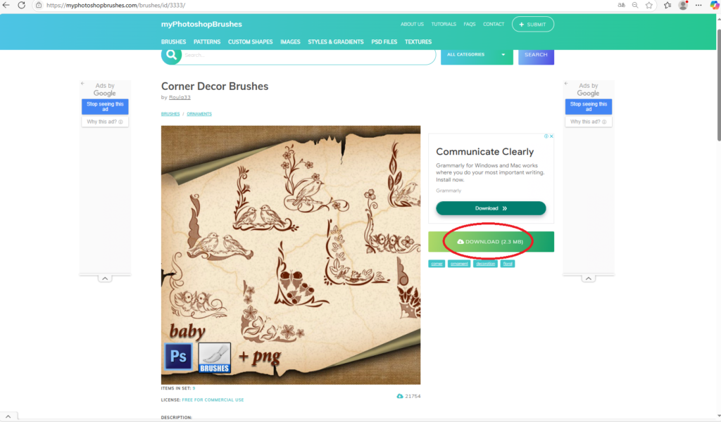 クリックして 「Corner Decor Brushes」 のダウンロードページを開きましょう。